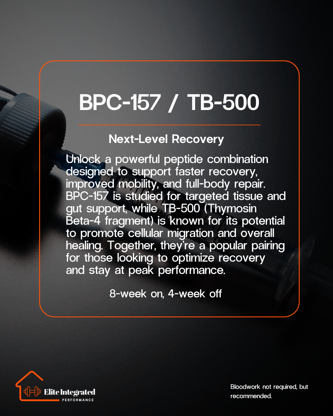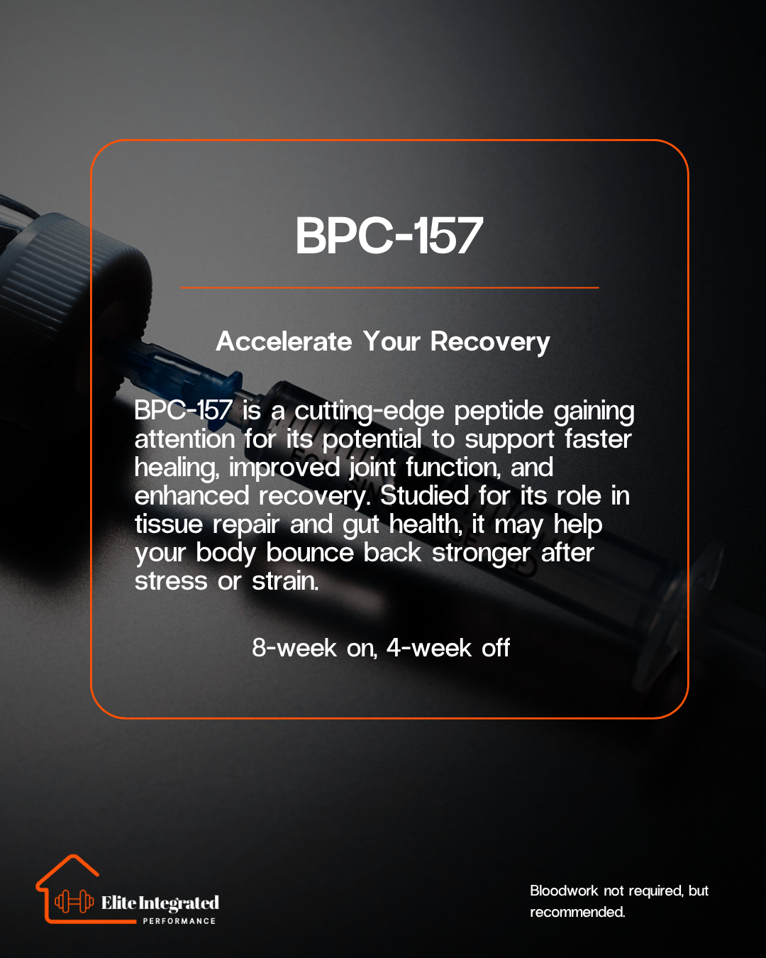 At Elite Integrated Performance, peptides (if prescribed) are separate and based on your individualized plan.